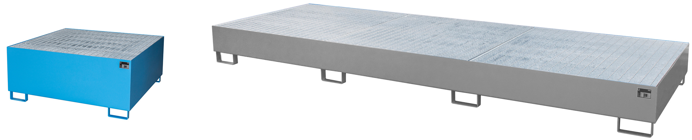 Auch Gitterroste sind wahlweise erhältlich. Diese erleichtern die Reinigung der Wannen, indem sie nach der Nutzung einfach herausgenommen und separat behandelt werden können. Außerdem können sie als Stellfläche von beispielsweise Fässern direkt über der Wanne dienen.