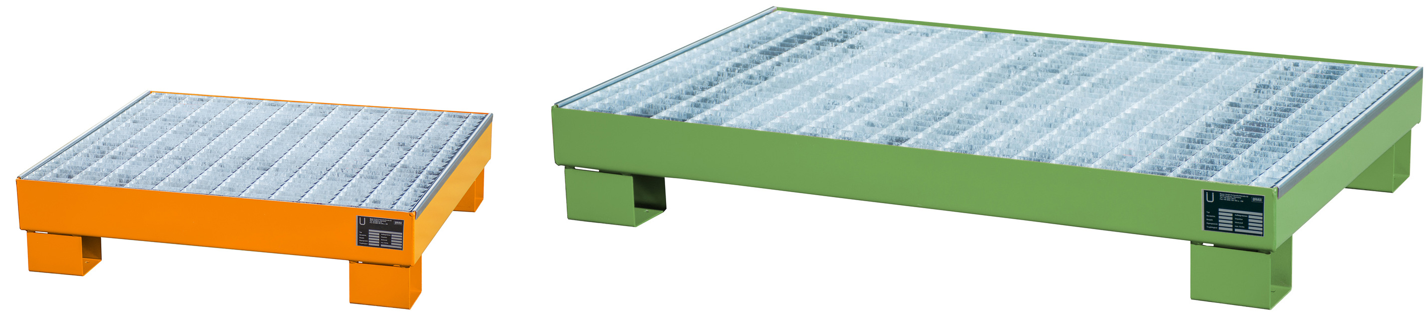 Gefahrstoffwanne mobil Stahl verzinkt oder pulverbeschichtet mit Gitterrost - Stahlwanne in verschiedenen Ausführungen