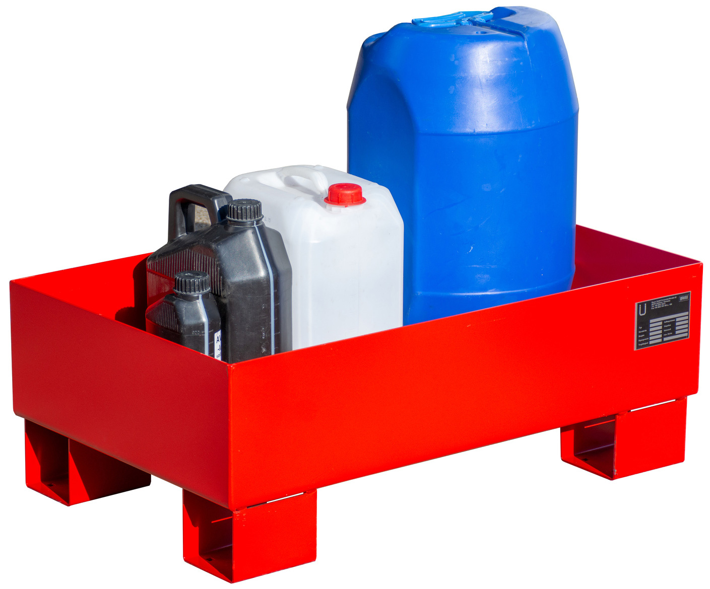 Gefahrstoffwanne feuerrot pulverbeschichtet ohne Gitterrost - Stahlwanne mit 65 Liter Auffangvolumen