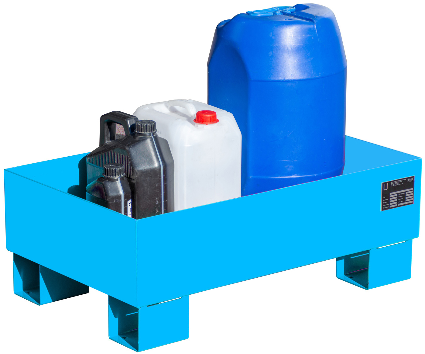 Gefahrstoffwanne lichtblau pulverbeschichtet ohne Gitterrost - Stahlwanne mit 65 Liter Auffangvolumen