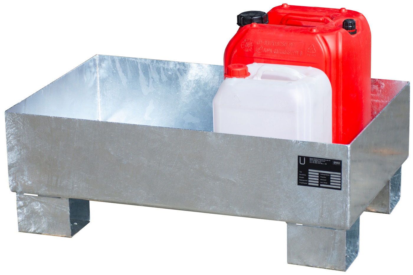Gefahrstoffwanne verzinkt ohne Gitterrost - Stahlwanne mit 65 Liter Auffangvolumen