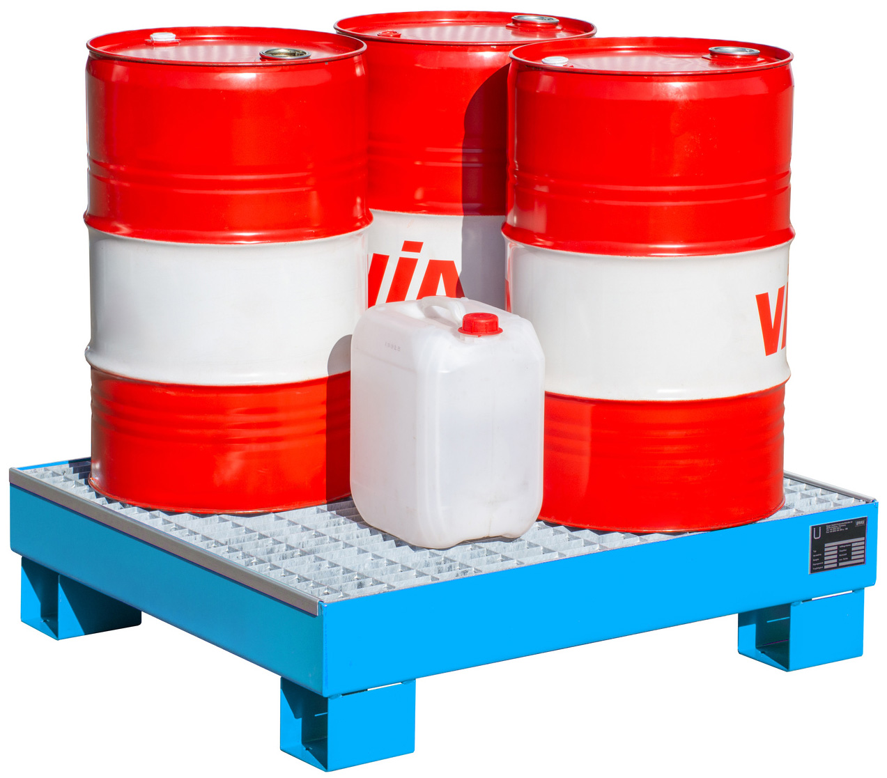 Gefahrstoffwanne lichtblau pulverbeschichtet mit Gitterrost - Stahlwanne mit 61 Liter Auffangvolumen