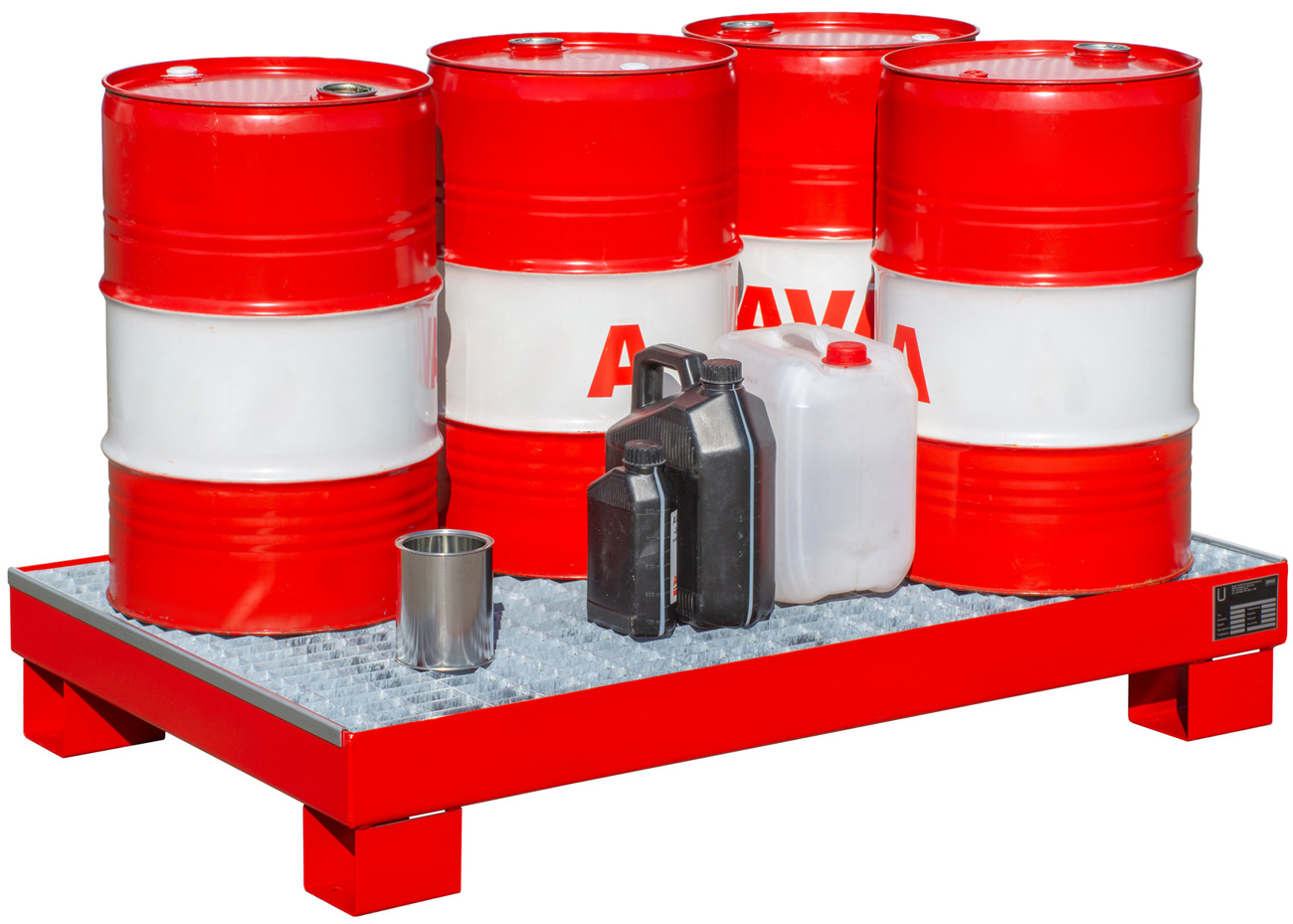 Gefahrstoffwanne feuerrot pulverbeschichtet mit Gitterrost - Stahlwanne mit 74 Liter Auffangvolumen
