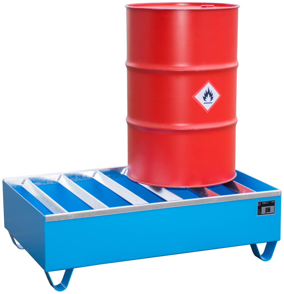 Gefahrstoffwanne lichtblau pulverbeschichtet mit Fassauflage - Stahlwanne mit 224 Liter Auffangvolumen