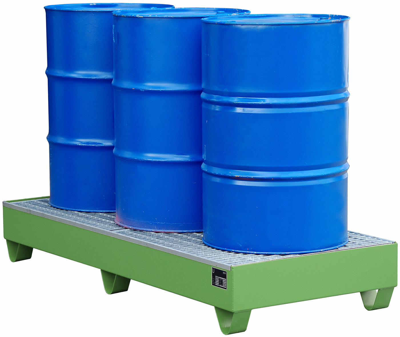 Gefahrstoffwanne resedagrün pulverbeschichtet mit Gitterrost - Stahlwanne mit 202 Liter Auffangvolumen