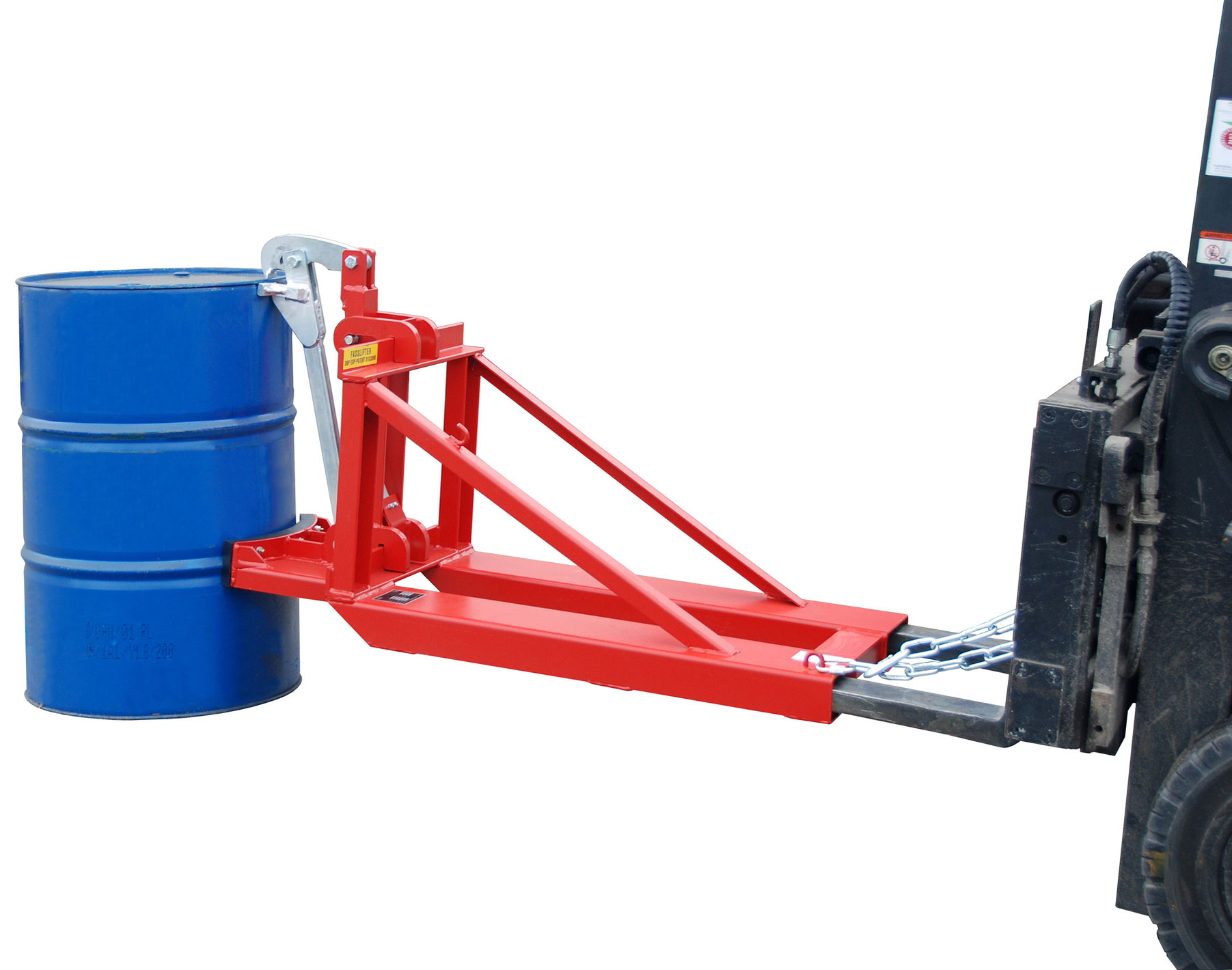 Sollen gefüllte Fässer sicher und schnell transportiert werden, ist der Bauer Fasslifter mit seiner extrem hohen Klemmkraft die optimale Wahl. Die stabile Konstruktion aus Stahlblech wird mittels Stapler aufgenommen und ist durch eine praktische Sicherung vor einem unbeabsichtigten Abrutschen von den Gabelzinken gesichert. Stahl-Spundfässer, Stahl-Deckelfässer, Kunststoff-L-Ringfässer und Kunststoff-Doppel-L-Ringfässer lassen sich mit der Transporthilfe risikofrei transportieren, denn das kompakte Design sorgt zusätzlich dafür, dass der Fahrer des Staplers einen freien Blick beim Transport hat. Dank des Gummianschlags wird die Gefahr einer Beschädigung des Fasses erheblich minimiert.