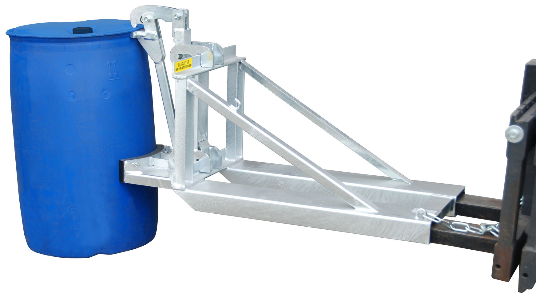Sollen gefüllte Fässer sicher und schnell transportiert werden, ist der Bauer Fasslifter mit seiner extrem hohen Klemmkraft die optimale Wahl. Die stabile Konstruktion aus Stahlblech wird mittels Stapler aufgenommen und ist durch eine praktische Sicherung vor einem unbeabsichtigten Abrutschen von den Gabelzinken gesichert. Stahl-Spundfässer, Stahl-Deckelfässer, Kunststoff-L-Ringfässer und Kunststoff-Doppel-L-Ringfässer lassen sich mit der Transporthilfe risikofrei transportieren, denn das kompakte Design sorgt zusätzlich dafür, dass der Fahrer des Staplers einen freien Blick beim Transport hat. Dank des Gummianschlags wird die Gefahr einer Beschädigung des Fasses erheblich minimiert.