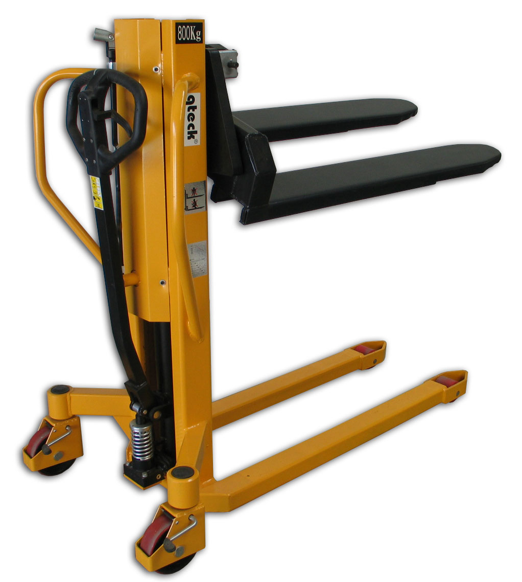 Alternativ zu dem Handhydraulik-Transportgerät gibt es ebenfalls einen Hubwagen, welcher mittels einer Sicherheits-Handwinde bedient wird. Die Gabeln sind flexibel verstellbar und die Gabelrollen sind im Gegensatz zu dem Handyhydraulik-Stapler aus Nylon.