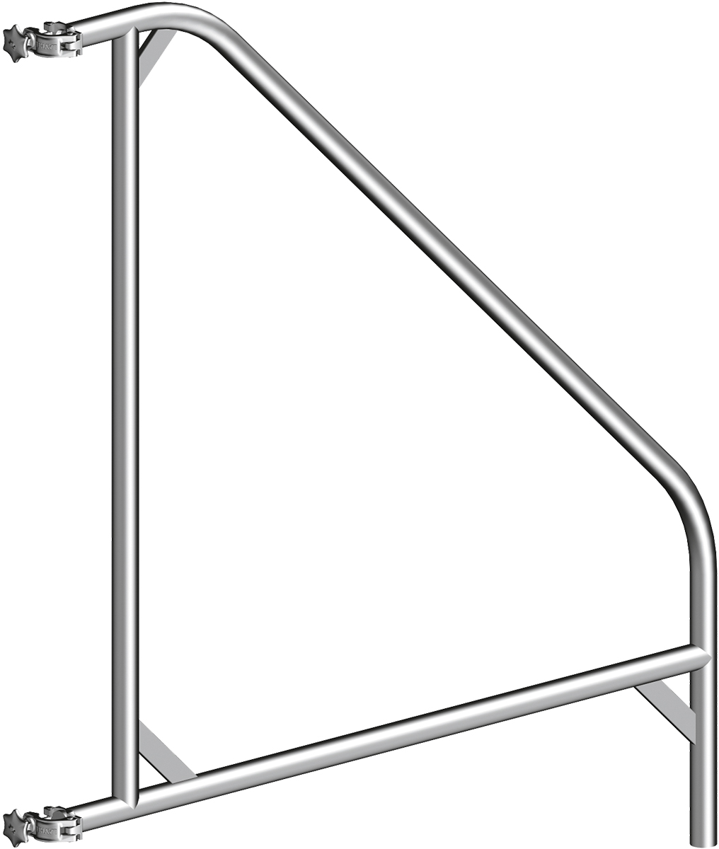 Je nach Variante sind entweder ein ein- oder beidseitiges Treppengeländer vorgeschrieben, welche für einen guten Halt sorgen und im Notfall als Absturzsicherung dienen. Optional gibt es die Treppen mit einer Neigung von 45° oder 60° und mit einem Stahlgitterrost oder geriffeltem Aluminium als Standfläche. Beide Varianten wirken rutschhemmend und garantieren auch bei Feuchtigkeit und Nässe einen festen Stand.