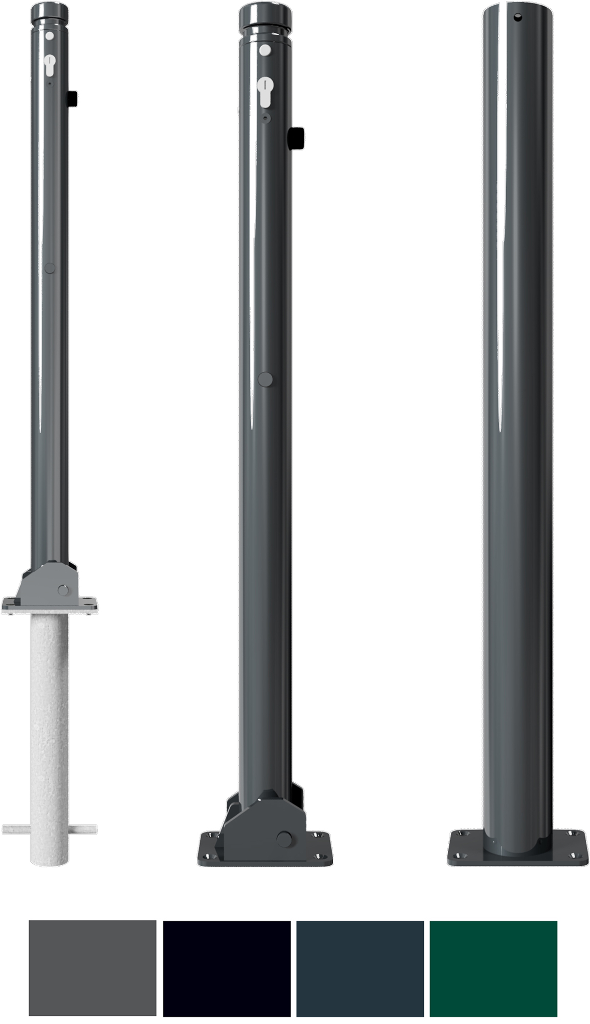 Je nach Einsatzort der Parkplatz Poller gibt es diese in unterschiedlichen Ausführungen. Für regelmäßig genutzte Parkplätze gibt es diese als umlegbare Variante: Befugte Personen können diese mit Hilfe eines Schlüssels jederzeit umklappen, um die Fläche zu befahren. Wahlweise verfügen die Absperrpoller hierzu über einen Dreikantverschluss oder ein Profilzylinderschloss. Für enge Parkhäuser bieten anfahrsichere Parkplatzsperren eine ausgezeichnete Alternative. Diese sind elastisch und geben bei einer äußeren Krafteinwirkung nach, sodass ein Fahrzeug keine Schäden davonträgt. Herausnehmbare Absperrpfosten eignen sich hingegen ideal als Begrenzung auf einem Veranstaltungsgelände. Wird der Poller vollständig entnommen, entsteht keine Stolperfalle und es entsteht kein zusätzliches Unfallrisiko.
