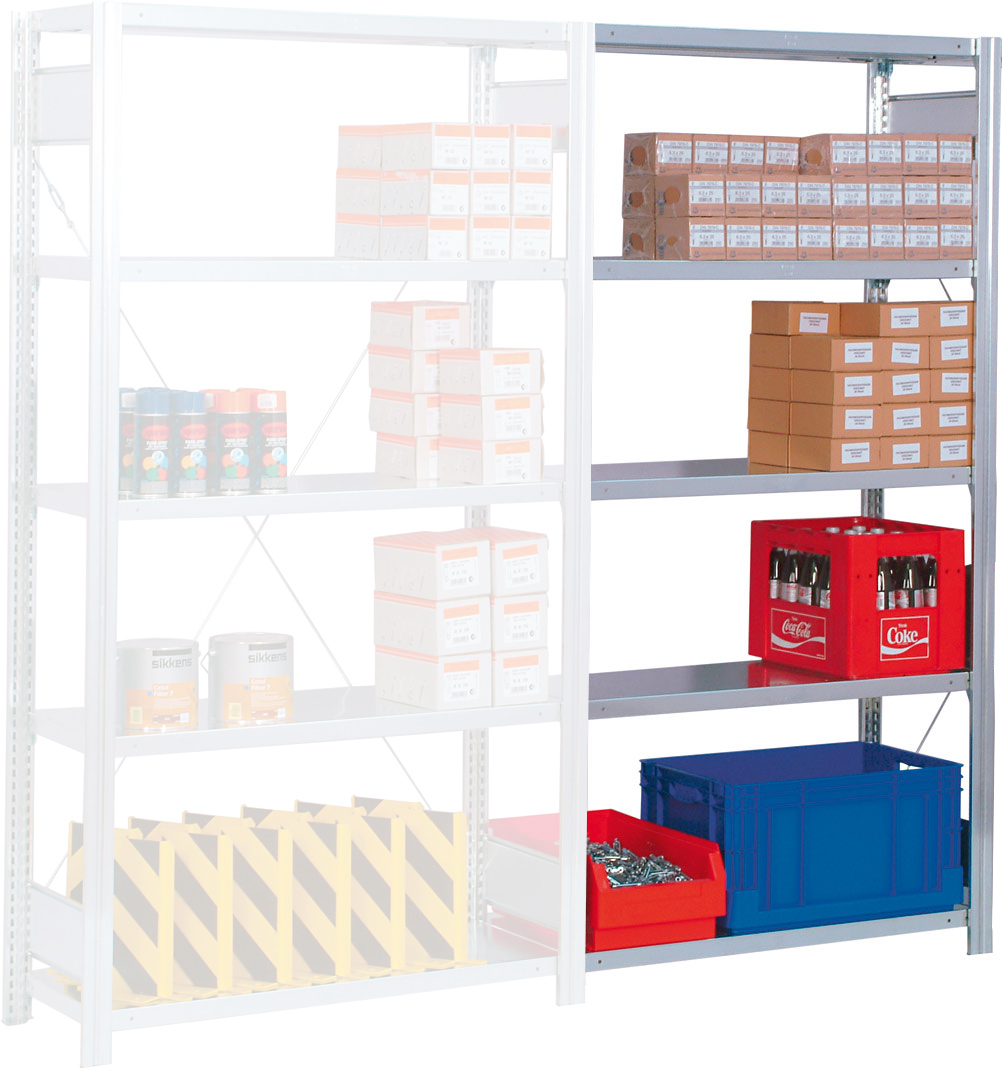 Die Zusatzebenen und das Anbauregal, welche in unterschiedlichen Tiefen und Feldbeiten erhältlich sind, dienen zur Erweiterung des Grundfeldes.