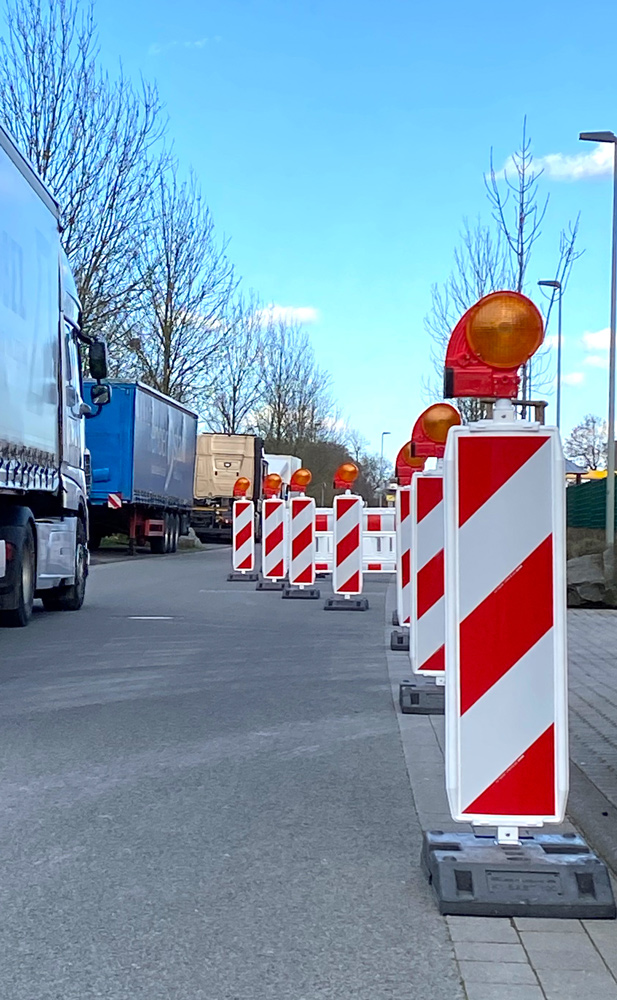 Warnbake aus Kunststoff mit Folie schraffiert - einseitig linksweisend - BASt geprüft