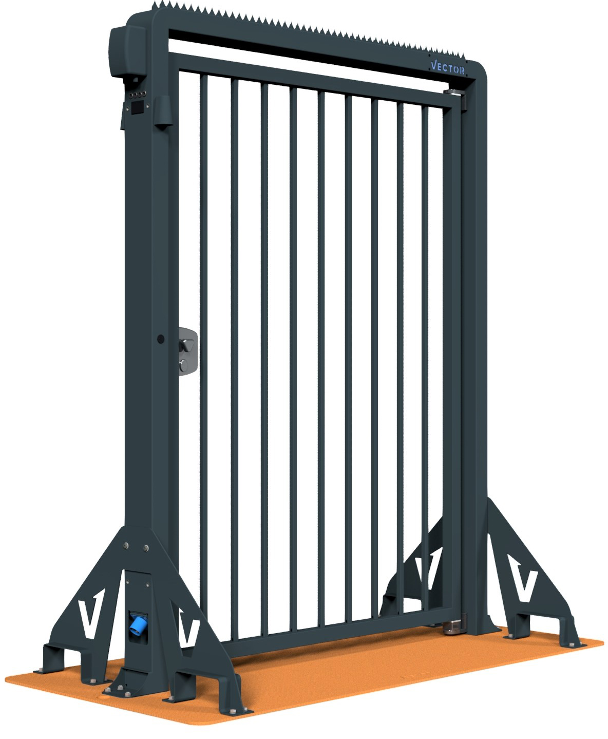 Die Schake Vector V-Door Steelplate kann optimal als Fluchtür, Zugangstür oder barrierefreier Zugang auf Baustellen oder Veranstaltungen genutzt werden. Die V-Door Steelplate steht - anders als die V-Door - nicht auf der universellen V-Plattform sondern auf einer Stahlplatte. Gerade wenn die Tür als barrierefreier Eingang genutzt wird, ist die ebenerdige Platte von Vorteil. Je nach Anforderung kann die Art der Zugangskontrolle, die Oberfläche sowie eine optionale Zaunanbindung gewählt werden.
