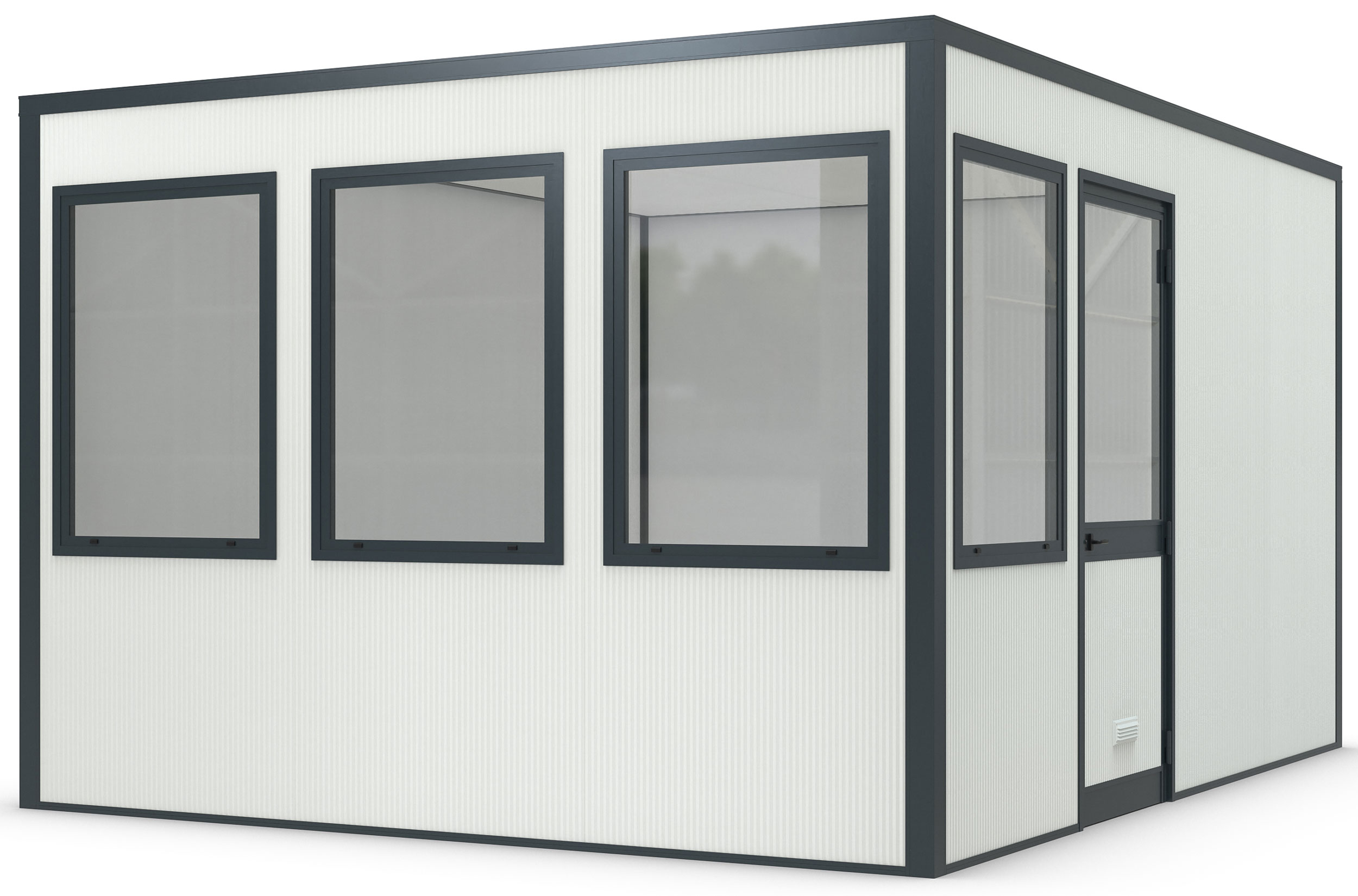Aufenthaltsraum mit Fenstern | Mobiles Hallenbüro ohne Boden als Nut-Feder-Stecksystem für den Innenbereich